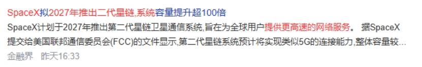 SpaceX确定今年7月上市并且把数据中心送上太空,以及SpaceX第二代星链系统2027年推出,势必会加快整个SpaceX基地的建设,对原材料的需求必然会急速扩张。而进入其供应链的公司有望迎来业绩的显著提升。