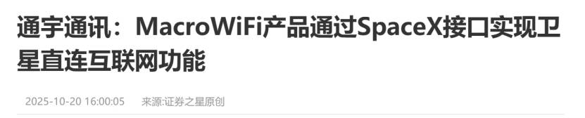 SpaceX供应商:公司的MacroWiFi产品通过SpaceX接口实现卫星直连互联网功能。