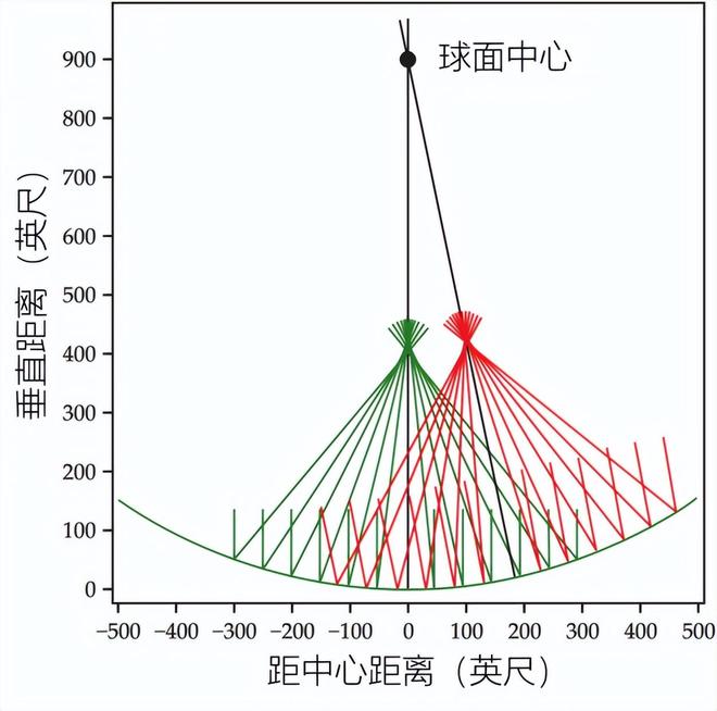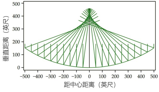 阿雷西博望远镜光路图。只要绕着球心改变棒状馈源的位置,就能收集不同方向来的光线,达到观测不同天区的目的。