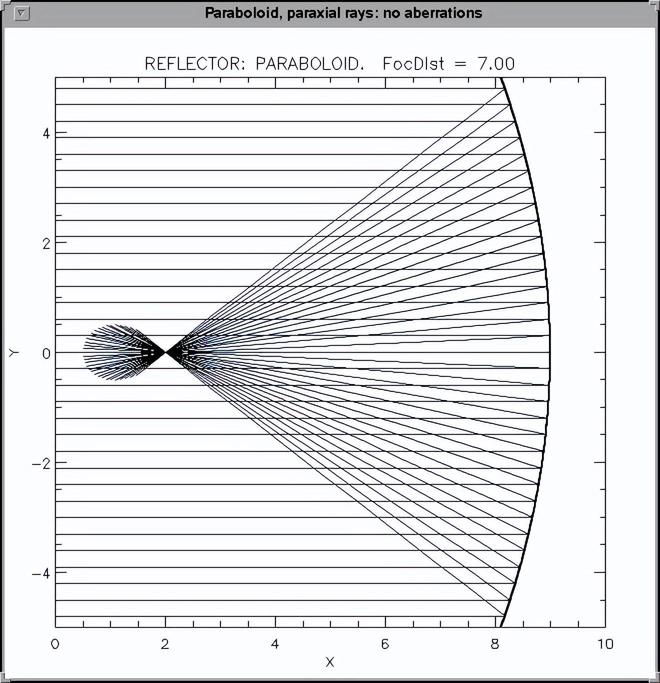 既然后来阿雷西博望远镜要使用改正镜把光线汇聚到一点,把光线汇聚到一个点肯定是更好的选择。而把光线汇聚到一点,最简单的方式就是直接使用抛物面作为反射面。大多数射电望远镜也都是选择使用抛物面来汇聚光线。但抛物面作为反射面也有它的问题:只有沿着抛物面对称轴入射的平行光线,才能被反射汇聚到一个点上。偏离对称轴的平行光线不能汇聚成一点,存在着“彗差”。